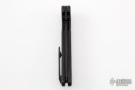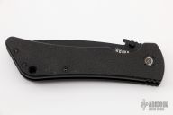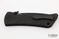 This Bad Monkey Linerlock folder by Southern Grind features a black drop point blade with dual thumb studs, Emerson's wave feature and a notched thumbrest. Handle has carbon fiber scales over black titanium liners and barrel spacers, black stainless steel tip up clip, and lanyard hole. Has a couple light scuffs, otherwise excellent condition.