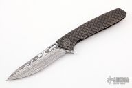 This limited 604DS model has a bronze titanium handle and a Vinland Damasteel drop point blade. The We Knife Co. 604D offers a long elegant design with a sleek blade and a scale textured titanium handle that provides a utilitarian grip as well as a collectible appearance. Dark bronze hardware adds a nice finishing touch to the design.