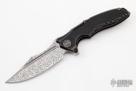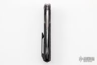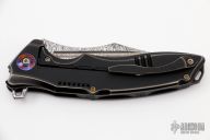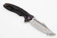 The WE Knife Co. Chimera offers custom style at a production price. This model sports an antique bronze titanium handle and a Damasteel blade. The modified clip point blade flows naturally from the handle further accentuating the distinctive style of the Chimera. An intricately machined titanium backspacer and pocket clip finish off the impressive design.
