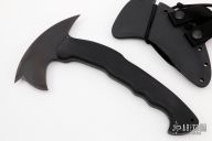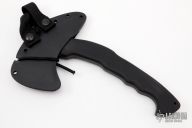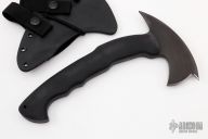The WK RnD Compact Axes offer all the attributes of the RnD Full Size axes, but with the center of the handle removed to make the axes easier to carry and deploy in close environments. The WK RnD Axe Series is a collaborative design between Master Bladesmith Daniel Winkler and skilled Sayoc Kali martial arts trainer Rafael Kayanan. The handle design provides a standard grip position, as well as a secondary close quarter grip that was developed to emulate the feel of a handgun grip. Axe Specifications Axe steel: 80CrV2 Black oxide no-glare finish Head length: 5 1/2" Overall length: 10 7/8" Blade thickness: 3/8" Skeletonzied full tapered tang Sheath Fast draw carrier Lined Kydex® HD shockcord quick-release retention system Nylon belt straps with Mil-Spec Pull-The-Dot™ snaps Designed for multiple carry options (See our Info page for carry options) Comes with original packaging. New from maker.