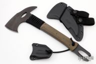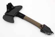 Developed for Medics that deploy with SOF Operators, the WK Medic Axe has features to meet their unique needs. While their main mission is to treat field casualties, it is not uncommon for Medics to perform combat applications. The WK Medic Axe is an effective weapon, as well as a breaching tool with a “can opener” on the end of the handle. A partial cord wrapped upper handle is standard on the WK Medic Axe. If the handle is damaged under the head, a new cord can readily be installed. The cord is also an excellent emergency resource. Axe Specifications Axe steel: 80CrV2 Black oxide no-glare finish Head length: 6" Overall length: 13 1/4" Blade thickness: 3/8" Skeletonized tapered full tang “Can Opener” end 1/3 paracord wrap handle Sheath Fast draw carrier Lined Kydex® HD shock cord quick-release retention system Nylon belt straps with Mil-Spec Pull-The-Dot™ snaps Designed for multiple carry options (See our Info page for carry options) New from maker with original packaging.