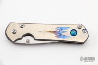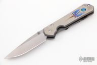 This Small Sebenza 21 by Chris Reeve Knives features a satin and tumble finished blade with notched thumbrest and single titanium thumbstud. The handle has a titanium frame with unique graphic and opal mosaic inlay, titanium lanyard pin. Comes with original sheath. Has a couple of light scuffs, otherwise excellent condition.