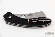 This C177G ROC from Spyderco is a Serge Panchenko design, it features a bead blasted cleaver style blade with thumb hole and notched thumbrest. The handle is comprised of black G10 scales over steel liners and standoffs. Reversible tip up carry pocket clip. Excellent condition.