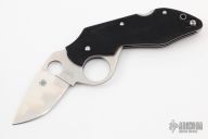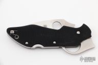 The Introvert’s full-flat-ground VG-10 stainless steel blade features Spyderco’s Trademark Round Hole and a Fred Perrin-inspired integral index-finger hole that anchors the knife into the user’s hand for exceptional grip security. The leading edge of the larger hole also functions as a flipper, allowing the blade to be swiftly opened with a stroke of the index finger.
