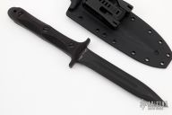 The first rendition added a lot of features but still stayed true to the conventional double-edged dagger. Starting with the handle Rick kept the sturdy full tang feature just as the originals with the protruding skull crushed at the end. He also kept the very distinctive scalloped handle scales that are very much Ek. The crossguard was added into the full tang construction thereby guaranteeing a rock-solid hold. The blade is where things really depart from the original. Rick decided on a hollow "ground" double edge and instead of grinding those edge bevels, they are 3D milled them which allows the incorporation of an "armor-piercing" tip! With a deep fuller running the length of the blade it gives it the "I beam" toughness. All this makes this Traditional Ek a very capable dagger.