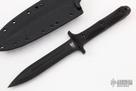 For the second model, Rick decided to depart from the traditional dagger and incorporate some very cool features that he feels the commandos in WWII would definitely have voted for! While leaving everything about the handle the same as the first model, he made all the changes to the blade on this second model what he calls the "Hollow Ground" Dagger. What does Rick mean by that? Leaving the facing side the same double edge on the reverse side he scalloped the entire blade into a wide concave surface. It essentially makes this dagger a "chisel" ground type. And again, all bevels are CNC 3D machined. This cross-sectional shape is very similar to the "tri" blade bayonets of the 18's. To complete this very unique blade Rick added a concave “thumbprint” similar to the Case V-42 of WWII.