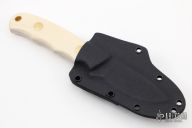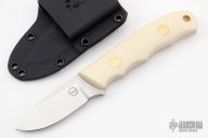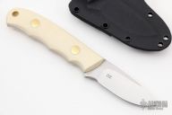This K-28 Personal by Dozier Knives features a satin finished blade, .125" blade stock and .860" blade depth, full tang construction. The handle has ivory G-10 scales with brass pins and lanyard hole. Comes with kydex sheath with belt clip. New from maker.