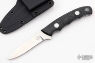 This K-13 Whittler by Dozier Knives features a satin finished blade, .124" blade stock and .702" blade depth, full tang construction. The handle has black linen micarta scales with aluminum pins and lanyard hole. Comes with kydex sheath with belt clip. New from maker.