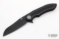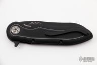 The Max Evolution by Jerry Moen features a black sheepsfoot style blade. The handle is composed of black titanium with matching tip up titanium pocket clip with hidden screws. The lockbar is nicely recessed into the handle scale. Has a few light scuffs, otherwise excellent condition.