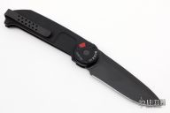 This BF2 R CD from Extrema Ratio features a black coated drop point blade with friction folder style opening. The handle is comprised of black aluminum scales over steel liner lock. Blacked out hardware and stainless steel right/left reversible tip up pocket clip. Has a couple light scuffs, otherwise excellent condition.