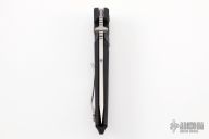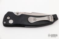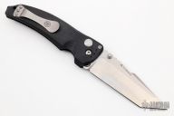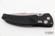 Features one-piece black frame which is made from high glass content reinforced polymer. 154-CM stonewashed blade. Push button lock mechanism. The blade comes out with a refined smoothness and locks securely into place. For easy carry there is also reversible pocket clip.