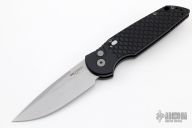 This TR-3 by Pro-Tech Knives features stonewashed magnacut spear point blade. The handle has a black milled aluminum frame with a black steel pocket clip. Includes the original box and papers. New from maker.