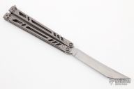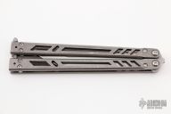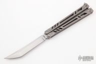 This Ti Bones Balisong from BRS features a matte finished blade. The handle is comprised of bead blasted titanium handles with satin titanium backspacers. Includes original box and papers. Excellent condition.
