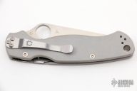 This Paramilitary 2 Linerlock Folder from Spyderco has a satin finished clip point CTS-20CP blade with thumb hole and notched thumbrest. Handle is gray G10 with stainless steel liners and stainless steel 4-way reversible clip. Excellent condition. Comes with original box and paperwork.