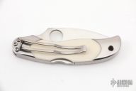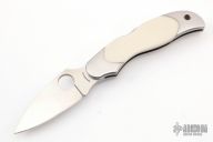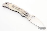This Kopa by Spyderco features a satin finish VG10 blade, and stainless steel double bolsters. This one has Evrina inlays. Stainless steel clip, tip down carry. Excellent condition. Includes original box. Rare and Discontinued.