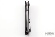 This 0909 by Zero Tolerance is a collaboration with Les George. Features a tumble finished blade with notched thumbrest and flipper. The handle has black G-10 scales, bead blasted stainless steel liners, black barrel spacers and a tip up reversible black stainless steel clip. #3652. Comes with original box and papers. Excellent condition.