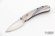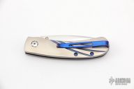 This T09 Kestrel has a hand rub satin finished stainless steel spear point blade with single thumbstud. The handle has a titanium frame with anodized tip down titanium clip. Has some light scuffs and scratches, otherwise good condition.