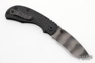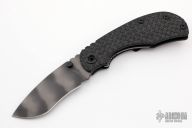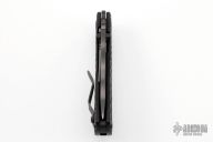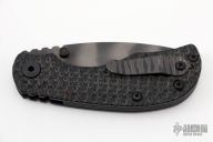 This RCC Linerlock by Strider features a tiger striped recurve blade with notched thumbrest and dual thumbstuds. The handle has double gunner grip black G-10 scales, titanium liner and a flamed tip up titanium clip. Nice detent, lockup and blade seating. Has a couple light scuffs, otherwise excellent condition.