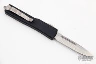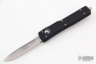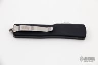 This UTX-70 OTF automatic by Microtech features a S/E satin finish blade with a standard edge. The handle has a black aluminum frame with blasted stainless steel tip down clip. Serial number 1130 and dated 09/2016. Comes with original box and papers. Excellent condition.
