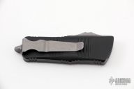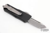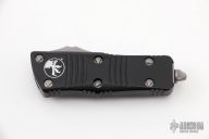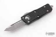 This Troodon Mini OTF automatic by Microtech knives features an Apocalyptic finished tanto blade, and a black aluminum handle with Apocalyptic hardware, tip down carry. Glass breaker. S/N 1149. Dated 01/2021. Comes with original box and papers. Excellent condition.