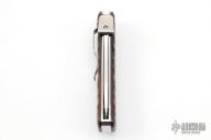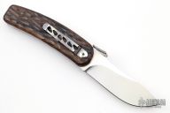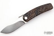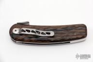 This Rhino Folder by Fox Cutlery features a satin polish finished blade with thumbdisc. The handle has jigged wood scales, stainless steel liners and tip up clip, and backspacer. Comes with zippered case, original box and papers. Excellent condition.