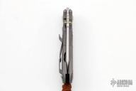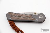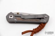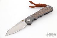 This Small Inkosi by Chris Reeve Knives features a tumble finished blade with dual thumb studs and notched thumb rest. The handle has bead blasted titanium frame with micarta inlays over a single barrel spacer. The bead blasted titanium clip. Lanyard on pommel. Excellent Condition.