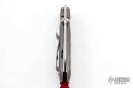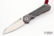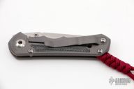 This Small Inkosi by Chris Reeve Knives features a tumble finished blade with dual thumb studs and notched thumb rest. The handle has bead blasted titanium frame with micarta inlays over a single barrel spacer. The bead blasted titanium clip. Lanyard on pommel. Excellent Condition.