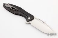 This Arius Flipper by Koenig knives features a two-tone blade with thumbhole. The handle has a marble copper dust carbon fiber and DLC titanium frame, tip up clip with hidden screws and titanium backspacer. Has ceramic bearings and a ceramic detent ball. Nice detent, lockup and blade seating. Comes with original box and COA dated 12/9/21. New Condition.