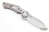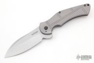 The Kershaw Junkyard Dog II by Kershaw features a fine bead blasted San Mai blade with false top edge. Easily opened via the Flipper system on the spine. The handle has bead blasted titanium scales with stainless steel tip down carry stainless steel clip. Nice detent, lockup and blade seating. Excellent condition.