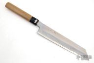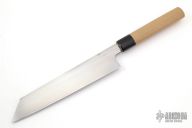 This Kiritsuke from Shinichi Watanabe features a Blue steel blade with a hidden tang construction. .159" Blade Stock. 1.847" Blade Depth. The handle features a buffalo horn hilt nicely complemented by a Ho wood grip. This is a fantastic piece that is razor sharp. New from Maker.