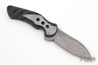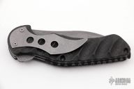 The Kershaw Junkyard Dog by Kershaw features a dark tumbled bladed with a notched flipper.  The handle features sculpted carbon fiber scales over steel liners and a tip down steel pocket clip.  G10 Backspacer.  This knife has been customized by someone other than Kershaw knives.Light scratches are visible on the pocket clip otherwise the knife is in Excellent condition.