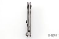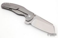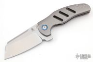 The Kizer C01C features a heavy-duty cleaver design from Chris Conaway of Sheepdog Knives. Its large sheepsfoot style blade is made from premium CPM-S35VN stainless steel with a stonewashed finish. The blade deploys effortlessly on a smooth ball bearing pivot, and locks up solid. Contoured titanium handle scales provide a comfortable grip and a resilient build. This knife offers a remarkable combination of tactical functionality and a refined, stylish appearance.