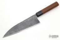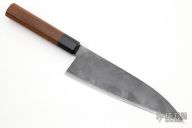 The blade is Stainless Clad Aogami Super Steel (NAS). As with all of Takeda's knives, it has a strong sharp edge. The octagon shaped wood handle is easy to hold. 190mm cutting edge, .098" blade stock and 2.060" blade depth. Comes with original box and papers. Brand new from maker.