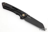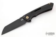 This Mini Buster has a darkened titanium handle and a black coated blade.