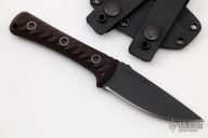 The Utsidihi is made from Nitro-V stainless steel with a Rockwell hardness rating of 59-60. The knife features a 3.5" blade that includes a Tungsten Cerakote finish for corrosion resistance and durability. Weighing in at only 4.5 ounces, the Utsidihi is deceptively light, but tough as nails featuring a full tang and tubed rivet handle construction, this is one tough and durable little knife. The beveled and contoured G10 grips feature a diagonal texturing that offers a very secure grip without being overly aggressive or uncomfortable, performing well in wet or dry conditions.