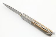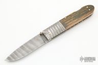 Barry Davis is from New York, and sold his first knife in 1980. He was a protégé of Jim Schmidt and specializes in collector grade folding knives with his own Damascus. Except for the few knives with scrimshaw, Davis' knives contain no parts made by others.