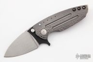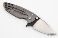 This Hyper 90 from Direware Custom Knives is modeled after the original early version of this knife. It features a hand rub satin finished blade with notched thumbrest and dual thumbstuds. The handle has a carved titanium frame, matching tip up clip. Comes with original box. New from maker!