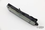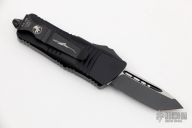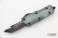 This Troodon Mini OTF automatic by Microtech knives features a black finished tanto blade with satin finished flats. The handle has a jade green G-10 top, black aluminum frame with black hardware, tip down carry. Glass breaker. S/N 066. Dated LVCKS 2022. Comes with original box and papers. Excellent condition.