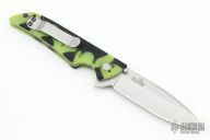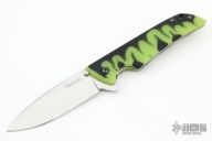 This Skyline by Kershaw features a bead blasted drop point blade with dual thumbstuds and flipper. The frame has G10 scales and a stainless tip down pocket clip. Excellent condition.