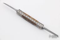 Barry Davis is from New York, and sold his first knife in 1980. He was a protégé of Jim Schmidt and specializes in collector grade folding knives with his own Damascus. Except for the few knives with scrimshaw, Davis' knives contain no parts made by others.