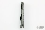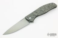 This Model 95 framelock flipper from Shirogorov has a flat ground and tumbled blade with a milled and tumbled titanium frame with matching tip up clip. Excellent lockup, crisp detent, and perfect seating. Knife comes in original box, COA with microfiber cloth. Excellent condition.