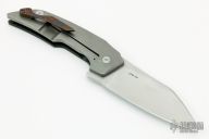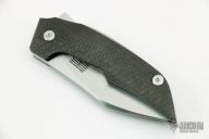 This Phoenix by Tashi Bharucha features a hand rub satin finished blade with flipper. The handle has a bead blasted titanium and carbon fiber frame complimented by a mokume tip up pocket clip.  Nice detent, lockup and blade seating. Comes with DogTag and a padded zippered case.  Excellent Condition.