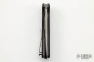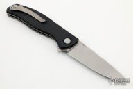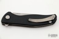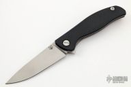 This F3 by Shirogorov Knives features a tumbled drop point blade with notched thumbrest and flipper. The handle has black G-10 scales over  titanium liners and black G-10 backspacer with recessed lanyard bail, titanium pocket clip is positioned for right hand, tip up carry. Excellent condition.