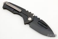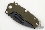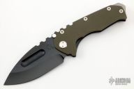 The Praetorian is a Marquee knife. It is a TON of blade in a relatively small package. This design incorporates aerospace materials, space age coatings, old school metallurgy, thoughtful design and hand craftsmanship that is rare but alive and strong in this modern world. This particular knife features a tumbled titanium and green G-10 frame and a black oxide tanto blade, and titanium clip, tip up carry. Couple marks on the clip, otherwise excellent condition.