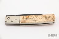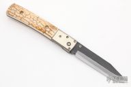 This Inagaki Linerlock Folder features a Stainless clad Aogami Super Steel (NAS) blade which is a high-carbon steel alloy with vanadium and is ground on both sides, has single thumbstud. The handle has nickel silver bolsters, mammoth ivory scales with polished stainless steel liners. New from maker.