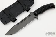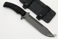 The knife is 12" in total length with a 7" blade made from 80CRV2 Carbon Steel. The 1/4" thick, oversized stock used for this knife is tough enough to handle anything you can throw at it. A long, deep fuller profile provides strength as well as a reduced surface area for deeper penetration. The clip point design is ideal for puncturing, and the curved blade allows for better surface area on cuts as well. The knife is finished with a Tungsten Cerakote finish for added corrosion resistance and durability, while providing a low visibility look.