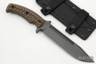 The knife is 12" in total length with a 7" blade made from 80CRV2 Carbon Steel. The 1/4" thick, oversized stock used for this knife is tough enough to handle anything you can throw at it. A long, deep fuller profile provides strength as well as a reduced surface area for deeper penetration. The clip point design is ideal for puncturing, and the curved blade allows for better surface area on cuts as well. The knife is finished with a Tungsten Cerakote finish for added corrosion resistance and durability, while providing a low visibility look.