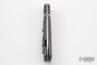 This Sebenza 25 from Chris Reeve Knives features a tumble finished blade with a notched thumbrest and dual thumb-studs. The handle has a bead blasted titanium frame with black canvas micarta inlays, matching titanium pocket clip is positioned for tip up carry. Comes with original box and papers dated August 31, 2015. Excellent condition.
