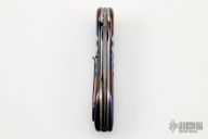 This Custom Glimpse linerlock flipper by Todd Begg features a Damascus blade with flipper. The handle has fluted mokuti scales and tip up clip, cracked ice textured titanium liners, and black G-10 backspacer. Includes IKBS (Ikoma-Korth Bearing System) for smooth and fast flipper opening that requires no wrist action. Nice blade seating, detent, and lockup. Comes with a zippered case. Outstanding work. Excellent condition.