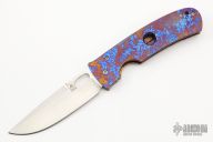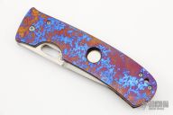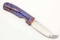 This Large TNT Framelock by Tom Mayo features a hand rub satin finished blade with a thumbhole. The handle has a Timascus frame and tip up clip. Smooth action. Nice detent, blade seating and lockup. Excellent condition.